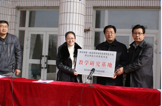 为进一步推动教育部第一批师范类特色专业——西北师范大学英语专业的建设,11月8日,学院在新疆阿克苏市十二校、阿克苏地区实验中学与阿克苏地区第十中学新建三所特色专业教学研究基地。教务处董晨钟处长、杨纳名副处长和学院刘全国副院长以及其他教务处相关部门负责人出席了基地授牌仪式,刘全国副院长代表学院与阿克苏地区教育局签署了《yl6809永利与阿克苏地区教育局关于共同建设教育部第一批师范类特色专业——西北师范大学英语专业教学研究基地的协议》,对基地学校外语教学的需求进行了调研,就教学研究基地的建设方案与基地学校负责人进行了沟通和交流。
