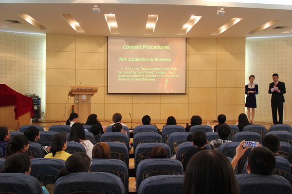 2013年9月21日下午2:30,由外语教学与研究出版社主办、西北师范大学教务处及yl6809永利承办的2013年“外研社杯”全国英语演讲大赛西北师范大学复赛在逸夫图书馆学术报告厅举行。本次大赛邀请了我院白丽梅教授、蔡兰珍教授、靳琰教授、王琦教授、俞婷教授和在我校任教的外籍教师Megan、Jade Sun等七位专业人士担任评委。通过初赛海选、从110多位报名者中脱颖而出的23名选手参加了本场比赛。