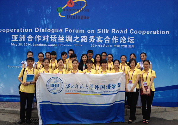 受甘肃省政府外事办公室、团省委委托,我院承担论坛全程服务工作,包括一对一翻译、现场导引、安全检查、会场礼仪等综合服务。为强化专业水平和综合服务能力,学院党政高度重视,从全院共遴选52名师生组建了志愿者服务队,并经过精心准备,专家辅导,专业培训,模拟演练等环节的综合实践,最终出色地完成了这次任务,赢得了国际友人和与会代表的一致好评,并受到甘肃省政府外事办公室领导的高度赞扬,充分彰显了学院乃至学校的整体形象和精神风貌。