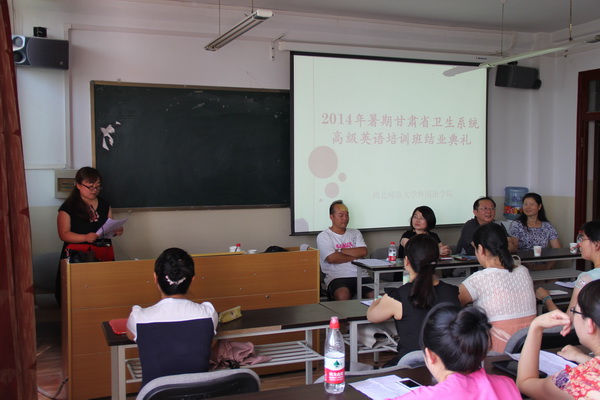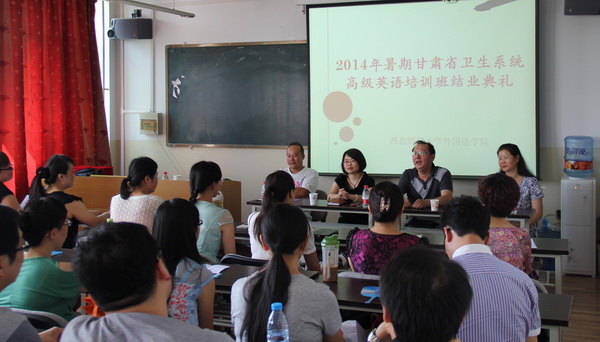 2014年7月29日下午,甘肃省卫生医疗系统高级英语培训班结业典礼在yl6809永利举行。甘肃省卫生厅李素梅处长,yl6809永利曹进院长,王建人副院长、培训部王朝一主任、全体代课教师和来自全省各地州市医疗一线的28名培训学员参加了本次结业典礼。