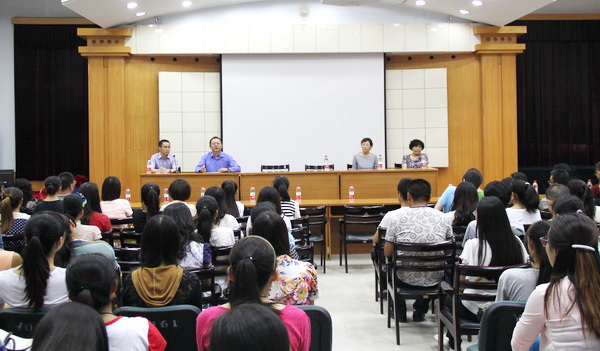 2014年9月4日下午14:30,yl6809永利2014级研究生开学典礼暨入学教育大会在图书馆二楼多功能报告厅举行。曹进院长、凌茜副院长、高育松副院长、研究生培养与管理中心靳琰主任、硕士生导师及全体2014级研究生参加了大会。本次会议由“开学典礼”和“入学教育”两部分组成,会议由高育松副院长主持。
