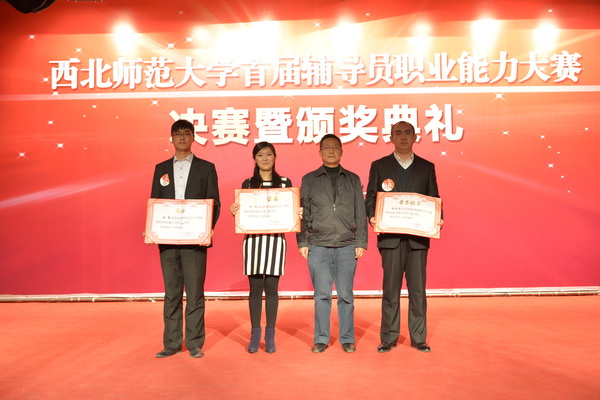11月12日下午,西北师范大学首届辅导员职业能力大赛决赛暨颁奖典礼在大学生活动中心二楼多功能厅举行。我院辅导员陈潇荣获二等奖。