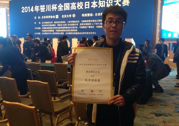 此次大赛赛期一天半,比赛分团体预决赛和个人预决赛两部分。其中团体赛由个人指定题,团体指定题和抢答题三个环节组成。而个人赛则以参数选手们的笔试预赛和晋级决赛的选手们同场PK赛的形式展开。比赛内容涵盖日本政治、经济、文化、文学和影视等日本的百科知识。赛场上选手们斗智斗勇,角逐异常激烈。堪称是由全国90多所高校选手们带给大家的一场视觉盛宴。最后我院学生代表凭借出色的发挥荣获优秀团体奖。尹志远、任皓和文佰平三位选手获得优秀个人奖,带队教师王国强获得优秀指导教师奖。