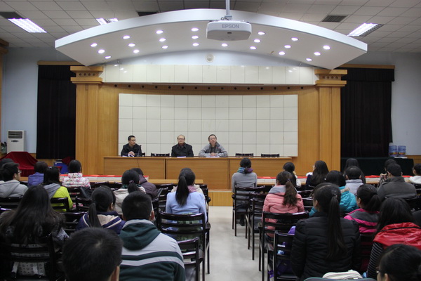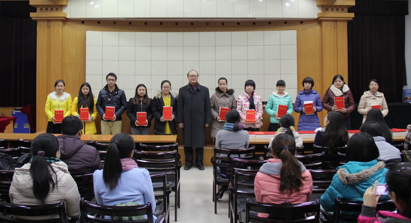 2015年1月7日下午4点30分,我院在图书馆二楼多功能报告厅为荣获第三届全国翻译专业资格(水平)考试征文比赛的同学举行颁奖仪式。出席此次活动的有yl6809永利党委书记吴梦龙、院长曹进,副院长高育松,MTI教育中心主任周亚莉、副主任白丽梅以及全体MTI在读硕士和翻译系全体本科生。会议由高育松副院长主持。
