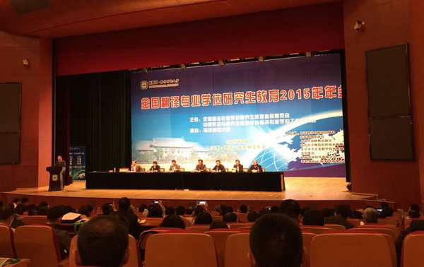 由全国翻译专业学位研究生教育指导委员会、中国学位与研究生教育学会翻译专业学位工作委员会主办、南京师范大学承办的全国翻译专业学位研究生教育2015年年会于2015年4月12日在南京师范大学召开,二百余家翻译专业硕士培养单位与会。我院曹进院长和MTI教育中心相关人员参加了本次年会。中国外文局副局长、翻译专业学位教育指导委员会主任委员黄友义致开幕辞,教育部学位管理与研究生教育司司长、国务院学位委员会办公室副主任李军做了主旨发言。全国翻译专业学位研究生教育指导委员会副主任委员何其莘教授对翻译专业硕士学位研究生教育评估工作做了简单通报,秘书长平洪解读了翻译硕士专业学位的基本要求。