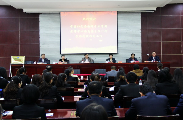 4月28日上午,中国外文局翻译专业资格考评中心杨英姿主任一行来我校举行“翻译专业资格(水平)考试推广基地”授牌仪式,并做相关报告。报告会由yl6809永利副院长高育松主持。西北师范大学副校长田澍教授、中国外文局翻译专业资格考评中心主任杨英姿女士、外交部翻译室原主任、中国驻特立尼达和多巴哥前任大使徐亚男女士、中国外文局翻译专业资格考评中心工作人员梁倩如女士、甘肃欧朗文化传播有限公司总经理郎建贞先生、甘肃省中国国际旅行社外联部经理陈天骥先生、兰州爱博翻译有限责任公司总经理雷耀春先生、西北师范大学学位办主任兼研究生院副院长杨武教授、yl6809永利全体领导、教师代表、全体MTI硕士研究生及翻译系本科生等参加了本次会议。