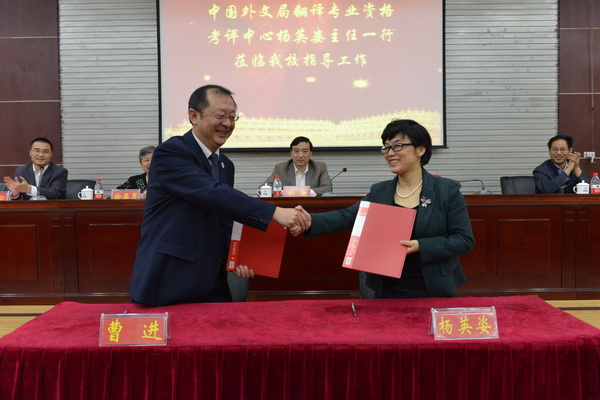 在此次会议上,yl6809永利院长曹进教授首先介绍了与会嘉宾,副校长田澍教授致欢迎辞,中国外文局翻译专业资格考评中心主任杨英姿女士致辞。曹进院长代表学院表态,表示一定建好基地,抓好人才质量建设。曹进院长和杨英姿主任分别代表yl6809永利和中国外文局翻译专业资格考评中心签约,田澍副校长和杨英姿主任共同为yl6809永利授牌。此次授牌仪式标志着yl6809永利成为全国第一个翻译专业资格(水平)考试推广基地。