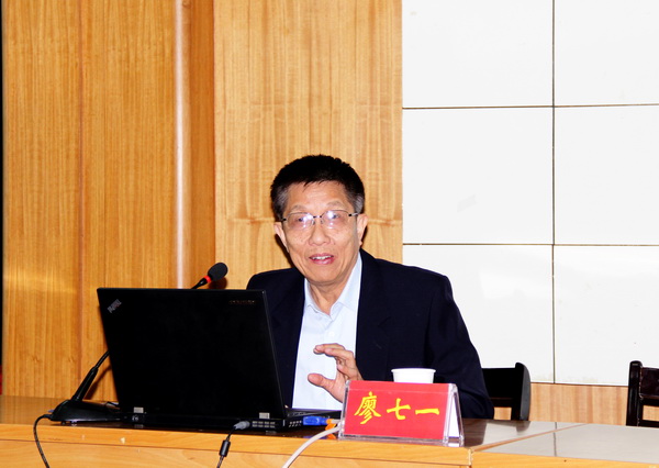 5月5日上午,我院特邀四川外国语大学廖七一教授来我校做关于《典籍外译的接受语境》学术报告,报告会由高育松副院长主持,学院领导班子成员、学院教师、翻译系本科生以及全体硕士研究生等参加了会议。廖七一教授长期从事英语专业本科和研究生的教学,在英美文学、翻译和当代西方翻译理论方面造诣颇深。曾多次获重庆市教学成果奖和优秀社科成果奖。