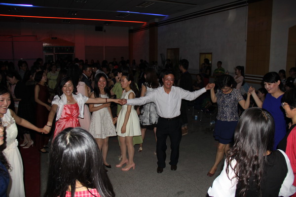 2015 年5月26日晚7:00,一场主题为“Auld Lang Syne”的毕业舞会在我校大学生活动中心多功能厅202室举行。学院领导、各系系主任、毕业班班主任、任课老师及全体毕业生300余人参加了本场舞会。舞会由2011级翻译2班毕业生李汶林同学主持。