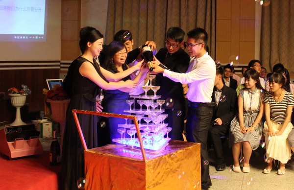 全体师生盛装出席,携自己的舞伴走过红毯,并在“签名墙”上留下了自己的祝福。舞会正式开始,院长曹进为舞会致辞,一句句亲切的话语道出了自己对老师们辛勤培育学生的感谢之情和对毕业生们的不舍之情和深深的祝福。随后,院领导、老师们及毕业生代表一同浇灌香槟塔,共同注入了绵绵师生情。
