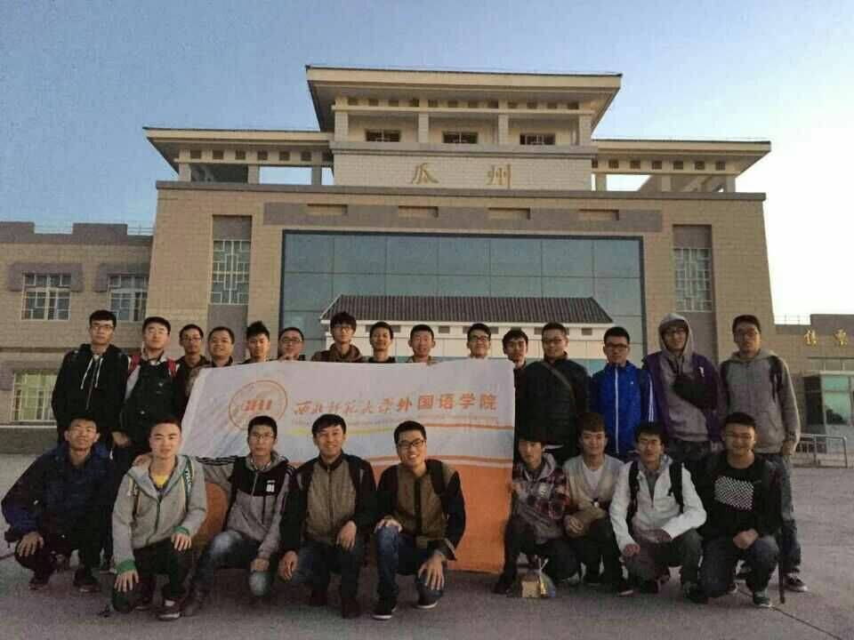 2015年9月25日-10月5日,我院13名本科生与11名硕士研究生受敦煌市旅游局邀请,赴瓜州参加了首届玄奘之路“八百流沙极限赛”,承担志愿服务工作,由我院英语系曹文、付庆军老师带队。