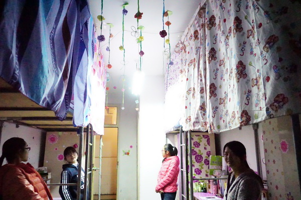 1029日晚,学院全体辅导员、团委学生会部分成员对2015级本科生宿舍进行了检查评比,主要从宿舍卫生、环境美化、宿舍文化建设三个方面进行考评。参评宿舍的同学们积极准备,大显身手:有的宿舍贴上赏心悦目的壁纸、有的宿舍亲手制作卡片和折纸、有的宿舍还将生活照片做成照片墙……还有风铃,丝带,地板格,每一间宿舍都有不一样的风采。最终评选出了1号楼114宿舍等15间优秀宿舍。