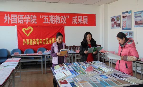 近日,学院在教学三号楼808室举行了为期一周的“五期教改”成果展,主要展示了2011年至2015年期间,为全面落实《国家中长期教育改革和发展规划纲要(2010-2020)年》、《甘肃省“十二五”高等教育发展规划纲要》、《西北师范大学2009-2015年发展战略规划纲要》、《西北师范大学2009-2015年本科教育发展规划》、《西北师范大学第五期本科教学改革工程实施纲要》,我院教师的教学、科研成果,以及学生学业、实践活动取得的丰硕成果。