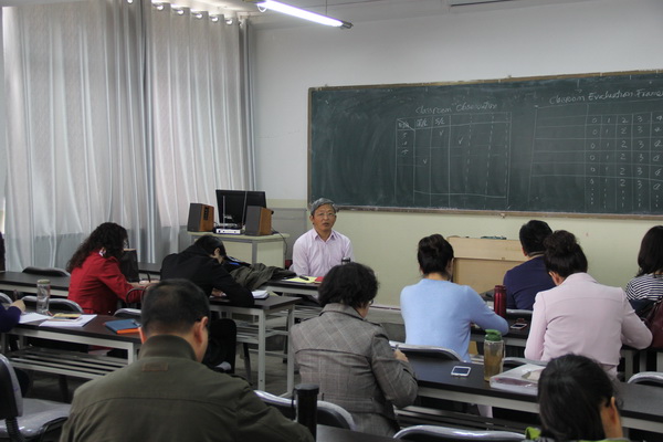 本次培训从3月28日开始,为期5天。在培训期间,邹为诚教授首先从课程设计的教育学原则、语言学原则等宏观角度,对英语基础课程设计理念及方法进行了详细的讲解;随后,邹教授对教学目标的设定,课程设计的类型、环节、步骤,课程教学的具体方法等进行了详细的讲解;除了课程培训,邹教授亲自进行教学示范,对我院英语专业一、二年级进行了四次教学观摩,用最直接的方法帮助我院基础英语课程教师观察课堂设计和教学的实施和开展。