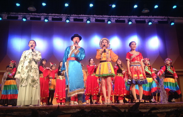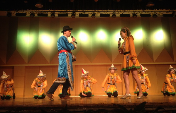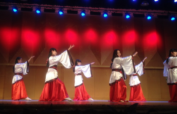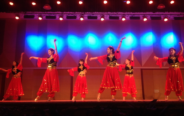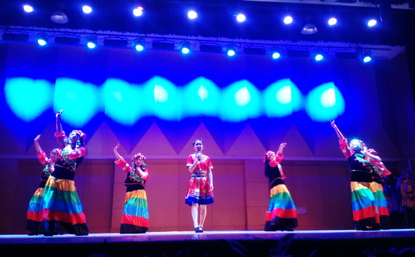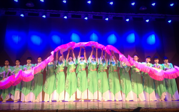 表彰大会结束后,古典优雅的扇子舞《茉莉花》拉开了迎新晚会的序幕,“香从清梦回时觉,花向美人头上开”,优雅的舞姿、舞动的红扇,让在场观众不觉耳目清新;晚会节目形式多样,有湖南话的双簧表演《糊涂县官》,有动感十足的韩国舞《Heart attack》,有研究生带来的的青春洋溢、活力十足的街舞,还有乐队带来的《喜欢你》《童年》《一万次悲伤》,点燃了现场的气氛,又带大家重温了经典;小品《感染者》笑点不断,“僵尸舞”也让观众尖叫不绝;学院礼仪队带来的《礼仪博览会》,展示了中国汉代、俄罗斯、英国、阿拉伯国家及日本的礼仪文化,具有各国特色的精美服饰和极具异域风情的音乐,带给了观众一场视听盛宴,并让观众在欣赏节目的同时了解到了礼仪文化知识;《外文歌曲联唱》,各系师生齐上阵,用各国语言翻唱中文经典曲目,带给观众别有外院风味的歌舞盛宴;学院团委学生会带来的《Shake in 院儿》,热舞加改编了歌词的歌舞表演,引得场上尖叫阵阵、笑声不断;《少数民族大联欢》歌舞串烧,更让观众在短短的时间内体验到了彝族、维吾尔族、藏族和裕固族的风情,欢歌笑语、掌声连绵。