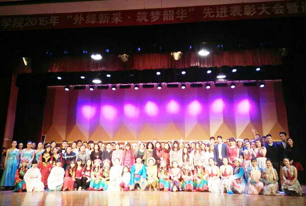 2015年12月25日晚,学院“外绎新采·筑梦韶华”先进表彰大会暨迎新晚会在我校音乐厅举办。学院全体院领导、教职工、本科生及研究生参加了本次表彰大会暨迎新晚会。