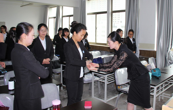 2016年4月22日下午,为了进一步提高翻译硕士(MTI)的礼仪素养,树立良好的外在形象,我院特邀请专业礼仪培训师在三号楼603教室为全体翻译硕士们进行了仪容仪表、形体训练和礼仪接待等知识的专门培训。