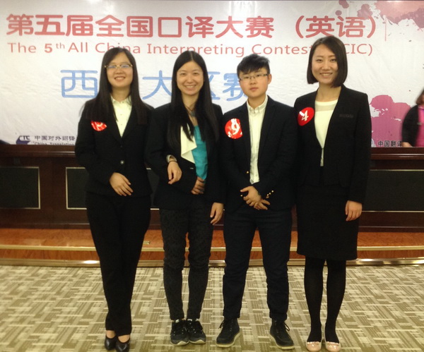 2016年5月28日上午,第五届“中译杯”全国口译大赛(英语)西北大区决赛在山西晋中学院顺利落幕。我院学生裴莹(2012级翻译1班)、邢朝阳(2012级翻译2班)及瞿晓娟(2014级翻译硕士)代表甘、青、宁、新四省(区)参赛,与包括山西、陕西省在内的西北大区各高校选拔的共计15名研究生及本科生选手进行了激烈角逐。最终,邢朝阳获得大赛一等奖,瞿晓娟和裴莹获得三等奖,曹进老师及王蕾老师获优秀指导教师奖。邢朝阳将代表西北大区参加6月举行的第五届“中译杯”全国口译大赛总决赛。