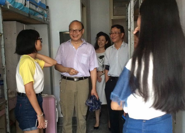 2016年8月24日下午,外学院党委吴梦龙书记、李杰副书记、凌茜副院长、王建人副院长以及团委学生会成员共赴兰天公寓,看望2016级本科新生及其宿舍情况。