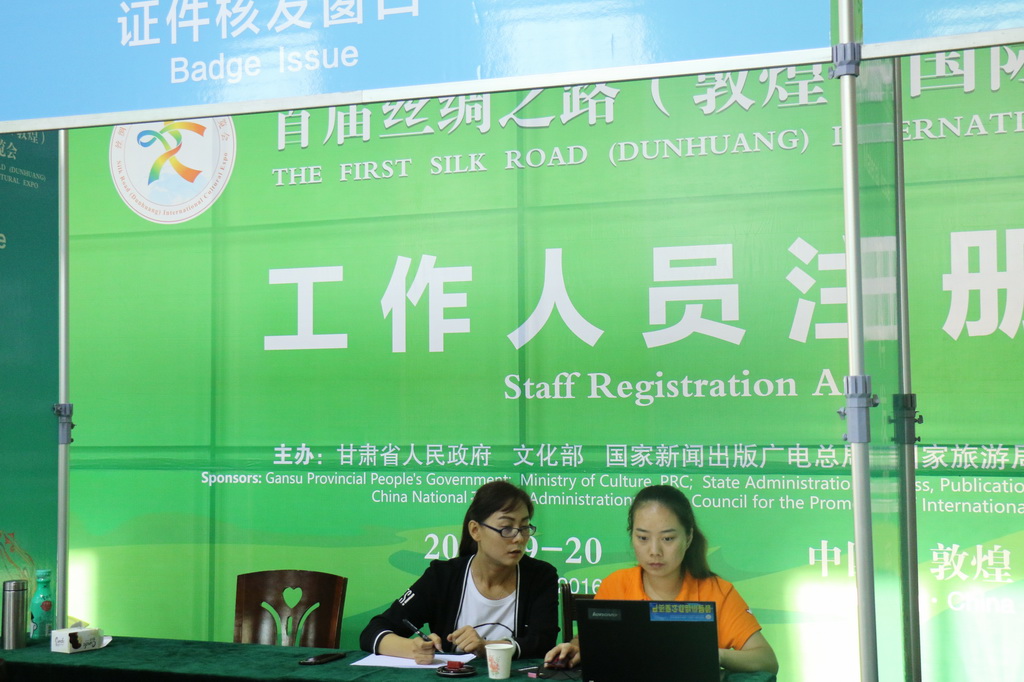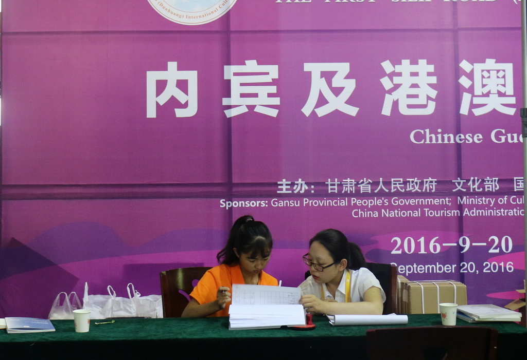 9月11日上午,我院200名志愿者抵达敦煌,并于当日下午开始培训。大会组委会邀请专业老师对志愿者们进行了甘肃省情、丝绸之路相关知识、心理健康、安全自护、应急救援知识、社交礼仪、外事安全及相关纪律的培训。 9月14日,全体志愿者在大会组委会的安排下熟悉场地。9月15日,志愿者与当地联络员进行了岗位对接及实战演练。我院志愿者分别被安排到文字材料组、活动统筹组、宾客迎送组、报道注册组、论坛服务组、文化年展组、食宿安排组和“一对一”陪同组中。分别承担了证件制作、证件分发、迎接嘉宾、场馆布置、座次校对、陪同翻译及宴会翻译等综合任务。