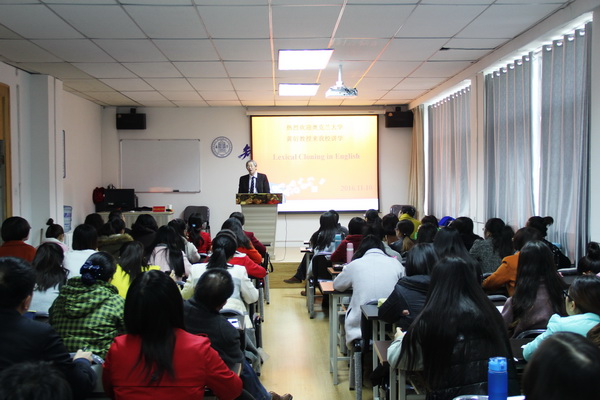 报告会上,黄衍教授先介绍了词汇克隆作为一种新的语言现象产生的背景,并运用生动的例子诠释了词汇克隆的定义。他讲述了词汇克隆主要存在于美式英语、澳大利亚英语、英式英语等语言中,但广泛用于美式英语中。通过列举,黄教授指出词汇克隆的对象可以是任何实词,如动词、名词、形容词等。其次,黄教授介绍了词汇克隆的主要作用。此外,他分析了在不同语境中被克隆词汇的不同意义,突出强调了语境对理解词汇克隆的重要作用及后者对前者的依赖性。最后,黄教授分析了新格赖斯理论以及其与词汇克隆的关系。此外,黄教授结合自己的经历,用具有代表性的例子解答了我院师生提出的问题。