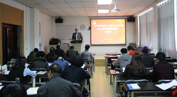 2016年11月10日下午四点半,研讨会第一次全体会议在学院八楼多功能教室806召开。学院党委书记吴梦龙同志做了专题报告,明确指出此次研讨会的主题是认真学习贯彻党的十八届六中全会精神,深入研讨学院的改革发展。要求全体参会人员应该充分认识到,党的十八届六中全会是在国家全面深化改革、决胜全面小康的关键时刻,召开的一次十分重要的会议,全会全面分析党的建设面临的形势和任务,系统总结了近年来全面从严治党的理论和实践,就新形势下加强党的建设做出新的重大部署,充分体现了党中央坚定不移推进全面从严治党的坚强决心和历史担当,体现了全党的共同心声,对统筹推进“五位一体”总体布局和协调推进“四个全面”战略布局,对推进党的建设新的伟大工程、推进中国特色社会主义伟大事业,实现中华民族伟大复兴的中国梦,意义重大、影响深远。充分认识到,全会明确了习近平总书记的核心地位、正式提出“以习近平同志为核心的党中央”,这是历史的选择、全党的选择、人民的选择、事业的选择、实践的选择,是全党的高度共识,反映了全国各族人民的共同心愿,是坚持和加强党的领导的根本保证,对维护党中央权威、维护党的团结和集中统一领导,对全党团结一心、不忘初心、继续前进,对有效应对“四大考验”、克服“四种危险”,对保证党和国家兴旺发达、长治久安都具有十分重大的现实意义和深远的历史意义。反复强调了认真学习贯彻党的十八届六中全会精神,是当前和今后一个时期学院中心组、各党支部和每一位教职工的首要政治任务和重大政治责任。要推动学习贯彻党的十八届六中全会精神,切实把广大教职员工的思想和行动统一到全会精神上来,努力开创改革发展新局面。