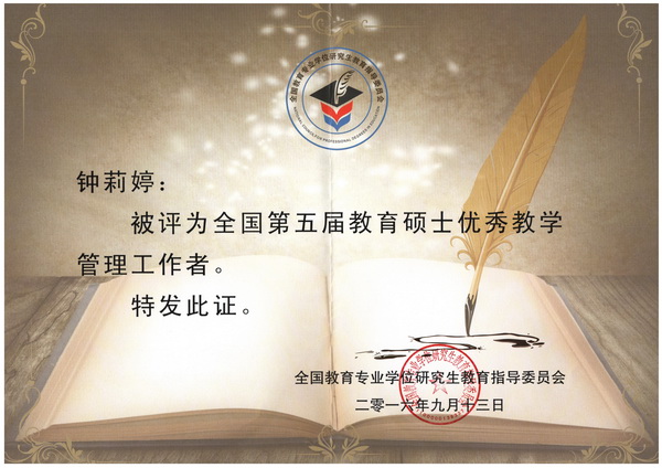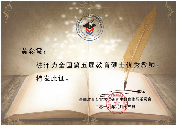 近日,全国教育专业学位研究生教育指导委员会公布了第五届“全国教育硕士优秀教师”和“全国教育硕士优秀教学管理工作者”评奖结果,我院黄彩霞老师被评为 “全国教育硕士优秀教师”,钟莉婷老师被评为“全国教育硕士优秀教学管理工作者”。