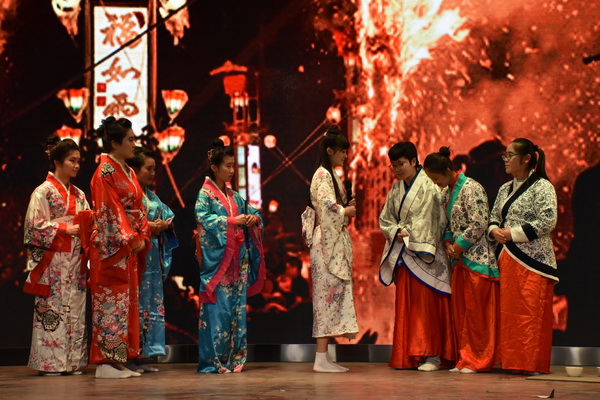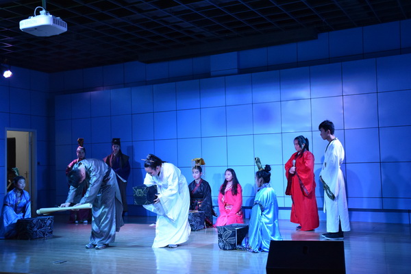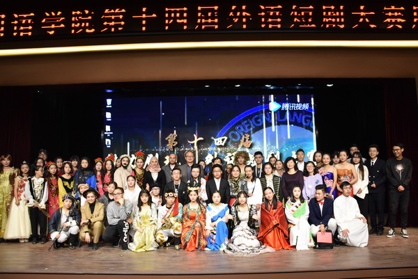 此次短剧大赛以“传一带一路文化,观古今中外故事”为主题,回顾历史,观照现实,启迪未来。大赛历时一个多月,经过初审、复审,共有11个班级参加决赛。英语短剧《文成公主入藏》、《昭君出塞》、《荆轲刺秦》等剧目以精美的服饰、婉转动人的歌舞将经典史事重新搬上舞台,演绎了我国经典传统文化;阿拉伯语剧目《阿凡提之卖树荫》、俄语剧目《钦差大臣》及日语剧目《源氏物语》《樱花女神》中美轮美奂的场景和演员们精湛的演技让大家感受到了异国文化,体会到了不一样的异域风情;《神探夏洛克》《项链》由同学们自己改编剧本,不仅内容极具创意,演员的表现力更是博得了全场观众的喝彩 ;《奥赛罗》带领大家深切感受了名著的魅力,演员纯正的语音和极富张力的表演不禁让观众感同身受,同剧中人一起悲从中来。更有别出心裁反串表演的《乱世佳人》引得现场观众笑声不断。