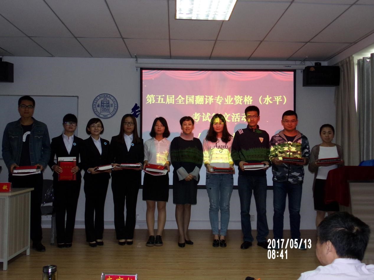其次,由凌茜副院长为“第五届全国翻译专业资格(水平)考试征文活动”三等奖获得者赵勃及纪念奖获得者张潇月等39名同学颁发了荣誉证书及奖品。