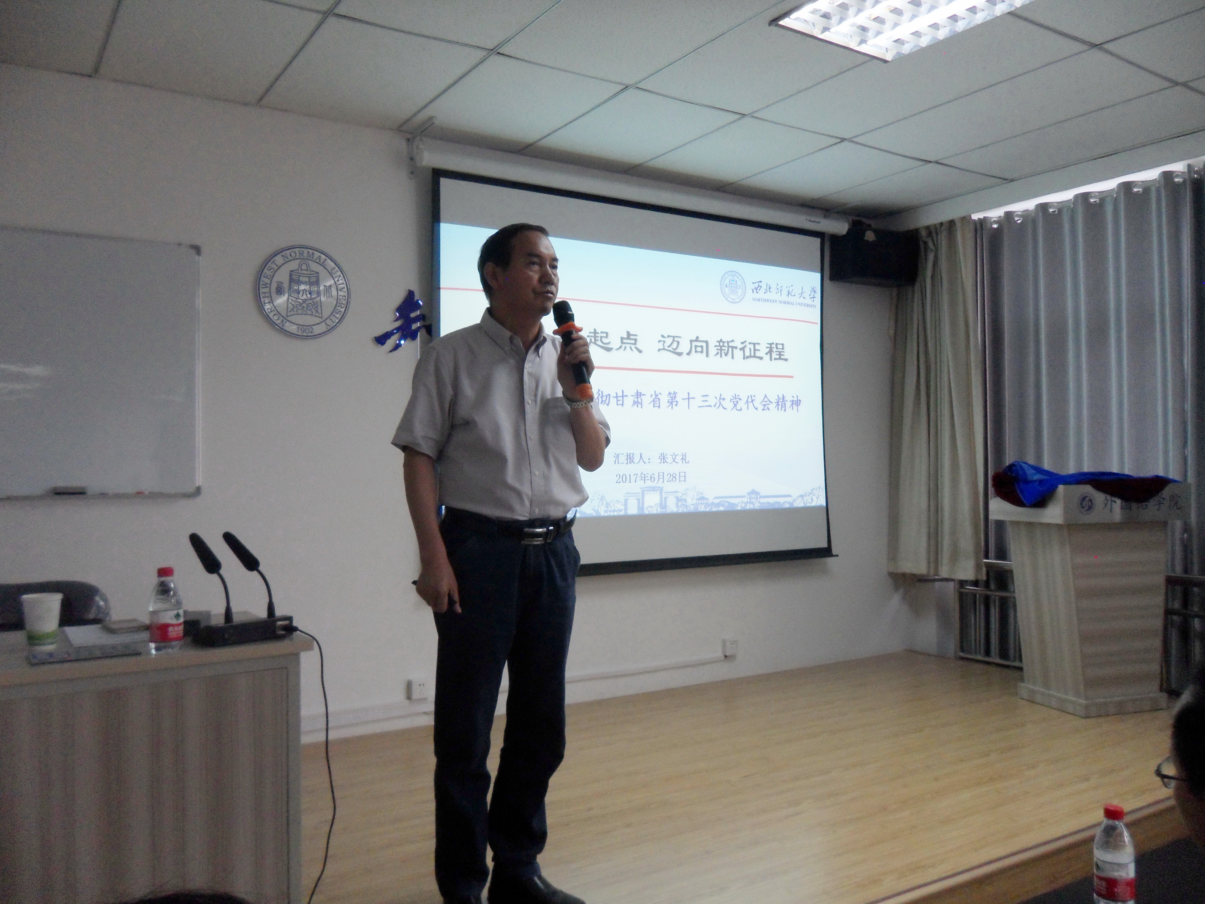 校党委委员、纪委副书记张文礼教授向yl6809永利全体学生党员和入党积极分子讲了“立足新起点、迈向新征程”的专题党课。张文礼教授全面详实地传达了中共甘肃省第十三次党代会精神,解读了林铎书记的报告。认为林铎书记代表省委所做的报告政治站位高、主题突出、目标清晰,总揽全局、求真务实,是指导全省各项事业科学发展的战略性、纲领性文件,描绘了建设经济发展、山川秀美、民族团结、社会和谐的幸福美好新甘肃的宏伟蓝图,以及实现宏伟蓝图,要深入学习贯彻习近平总书记视察甘肃时“八个着力”的重要指示精神。张文礼教授还详细介绍了省纪委刘昌林书记所作的纪委工作报告,分析了我省党风廉政建设和反腐败斗争面临的形势和任务,指出省委惩治腐败、从严治党的坚定决心。