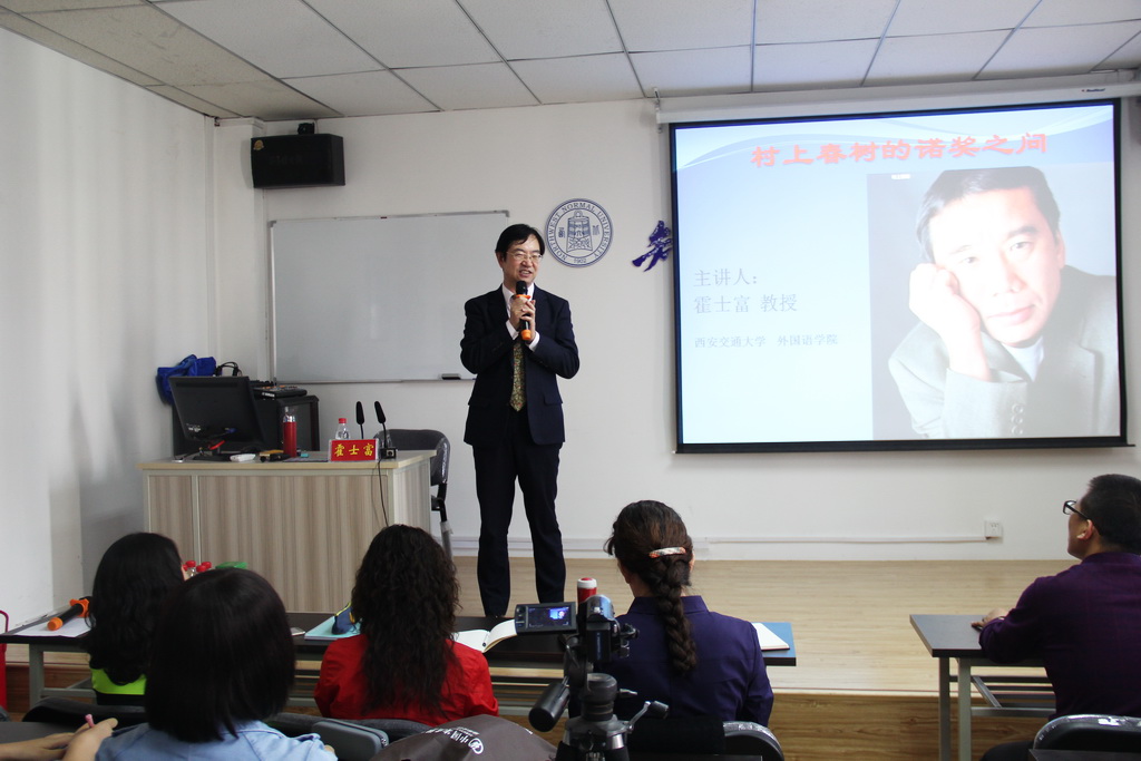 2017年9月21日14:30-16:20,应外国语学院邀请,西安交通大学霍士富教授在教学3号楼806室作了题为“村上春树的诺奖之问”的学术报告。本次报告系我院外国语言文学优势学科系列活动“外国文学学术活动周”学术报告之一,由高育松副院长主持。