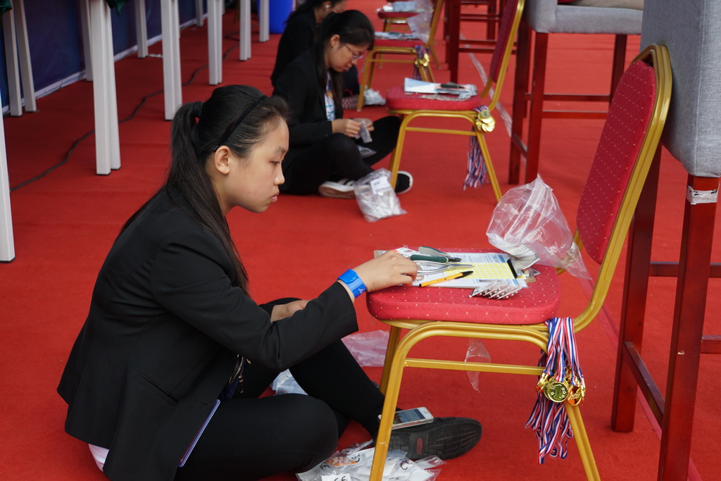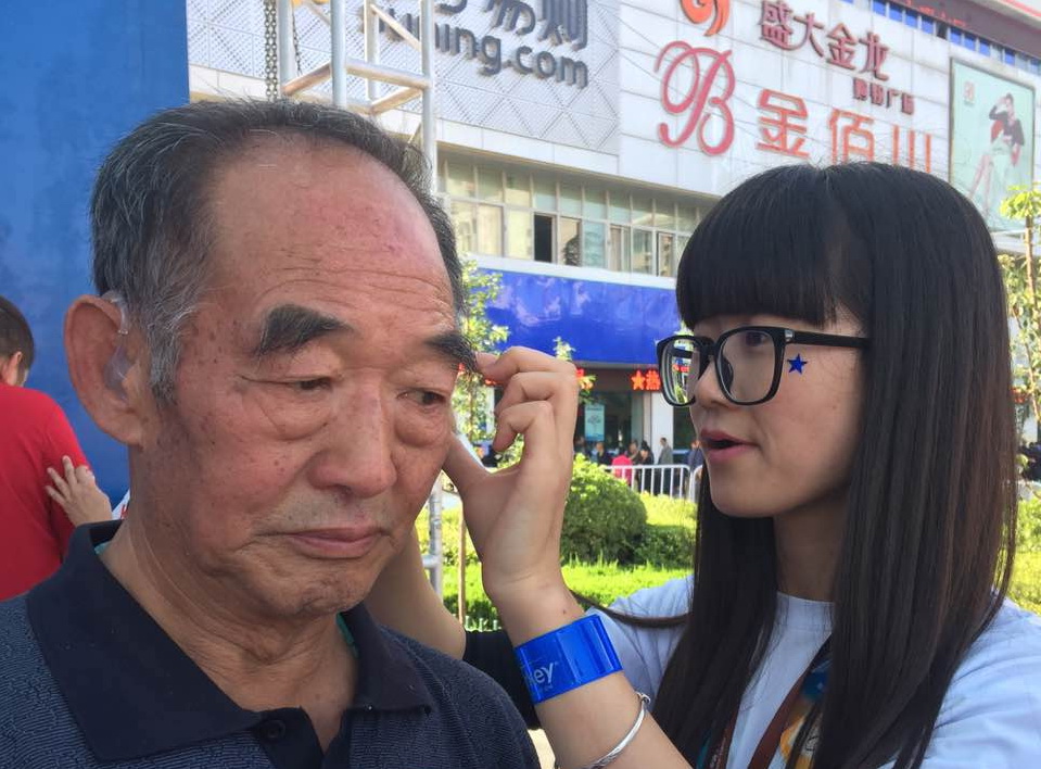 在此次活动中,我院37名英语志愿者(2016级翻译硕士及部分2014级、2015级本科翻译和英语专业学生)充分运用专业能力,发扬“奉献、友爱、互助、进步”的志愿者精神,尽心尽力为每一位听障患者提供优质服务。在这11天的志愿服务中,志愿者早出晚归,风餐露宿在工作岗位上,每天迎接近八百名听障患者,他们中有的是朝气蓬勃的少年、有的是血气方刚的青年、有的是成熟稳健的中年、但以饱经沧桑的老人居多,耳背眼花、行动不便、交流不畅,志愿者不厌其烦、声情并茂地为他们提供讲解和指导。每天高强度地重复着相同的工作,长时间的站立和大声说话已使志愿者腿酸脚疼、声带嘶哑,但每当志愿者看到一个个听障患者重获声音的那一刻,他们的脸上绽开了笑颜,所有的辛苦都变得意义非凡。