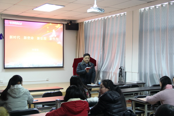 2017年12月21日下午,学院党委举办130期入党积极分子培训。学院党委书记柴繁隆为60名入党积极分子上党课。首先一起学习了党的十九大新修订《中国共产党章程》的部分章节,柴繁隆同志为入党积极分子做了讲解。柴繁隆同志还向大家宣讲了党的十九大报告,以习近平新时代中国特色社会主义思想为主线,从过去五年的工作和历史性变革、中国特色社会主义进入新时代、我国社会主要矛盾的新变化、新时代中国共产党的历史使命、习近平新时代中国特色社会主义思想、全面建设社会主义现代化强国新征程、我国经济社会发展的重大战略部署、坚定不移推进全面从严治党等八个方面,对党的十九大提出的新思想、新论断、新目标、新要求、新任务作了全面系统的宣传解读。