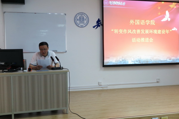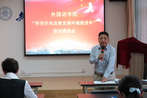 柴繁隆同志要求,全体干部教师要认真学习张俊宗同志的动员讲话,认真学习各位学校领导的讲话精神,深入学习《西北师范大学深入开展“转变作风改善发展环境建设年”活动实施方案》,一是要统一思想认识、明确工作任务、强化责任担当、狠抓工作落实。二要提高政治站位,打牢践行“四个意识”的作风。三要不忘初心,牢记使命,以新的信念、新的情感、新的作风,用上岗之心、做在岗之事,在其位、谋其政,干实事,求实效,务必保持好高远之气、浩然之气、蓬勃朝气,努力形成风清气正的干事创业环境。四要狠抓师德师风建设。新时代对高校教师师德师风建设提出了新的要求和期望,师范院校教师“两代师表”的地位、作用和责任决定了师德师风建设的特殊重要性,全体教师要学习优秀、兢兢业业、潜心治学、精心育人、无私奉献。五要认真对照检查,深入查摆作风方面的突出问题,提出整改措施,加强整改。六要全员动员,广大师生积极行动起来,打一场“转作风、正教风、促学风”的攻坚战。