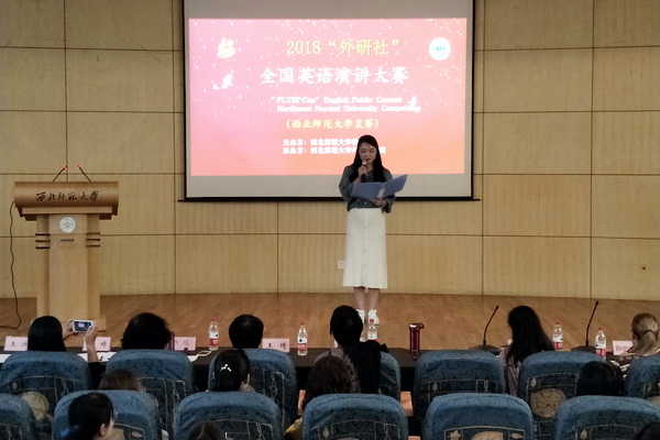 2018年9月19日,由外语教学与研究出版社主办、西北师范大学教务处与yl6809永利承办的2018“外研社杯”全国英语演讲大赛西北师范大学复赛在我校逸夫图书馆一楼学术报告厅举行。