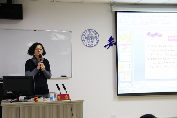报告会上,李老师首先对于现在初中学生的实际学习水平与状态给我们进行了介绍,李老师提到,现在初中阶段的学生的英语水平普遍薄弱,所以在实际教学过程中应该切实了解班级学生的实际水平,合理的设计课堂活动,并且要尽可能的让全班同学参与到课堂中;其次,在课堂活动中,可以多采用游戏的方式,营造热烈且舒服的课堂环境,调动学生的积极性与主动性,进而能积极的参与到课堂活动中;对于教学课件的制作,可以多采用动画引起学生的好奇心,也可以采用奖励的方式,利用学生的好胜心,让学生积极主动的学习英语。接着,李老师对于听说课、阅读课、写作课三种英语教学课型分别进行了展示与解说。在听说课中,李老师强调在进行听说之前要对于新单词与结构要进行充分的输入,听力作为初中学生英语学习的薄弱部分,一定要给学生充分的自信心且足够的活动练习,在设计练习活动时要与学生的实际生活相联系,积极创设真实有趣的情景,进而逐步提高学生的听说能力。对于阅读课的设计,利用游戏活动复习旧单词与知识点,使新课的导入更加自然且流畅;在阅读文章过程中,通过问题的提出以及问题难度的不断深入,提高学生的阅读能力以及语篇理解能力。在写作教学中,李老师强调要任务活动的设计要分层递进,且采用支点式教学方法,让学生的写作内容不断充实与丰富;同时,在设计课程活动时,可以适当的补充课外资料,但也要适应学生的接受能力。