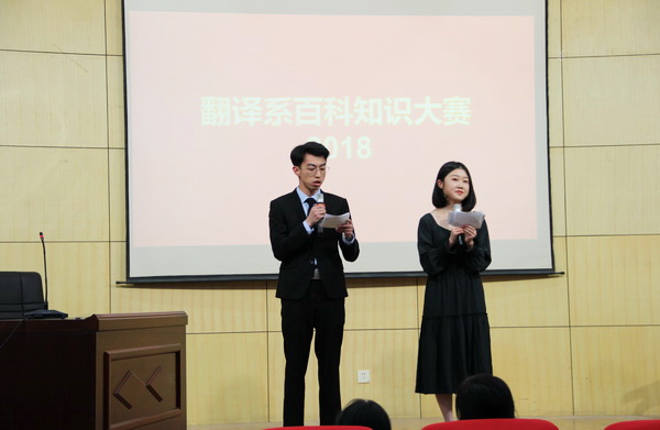 2018年11月23日(周五)下午四点半在逸夫图书馆西侧报告厅举行了翻译系百科知识竞赛。本次竞赛共有十八名同学参与,分为六组,每两组之间进行比赛晋级,翻译系一二三年级本科生和翻译系负责人到场观看了比赛。