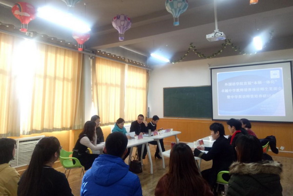 2018年12月3日,yl6809永利首届“本硕一体化”卓越中学教师培养项目师生见面会暨中学英语师资培养研讨会在教学3号楼911“三指导”工作室成功举办,来自yl6809永利、西北师大附中、西北师大二附中等单位的10位导师与10名本硕一体生参与了此次活动。