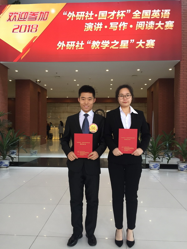2018“外研社杯”全国英语演讲阅读写作大赛全国总决赛于12月5日至9日在北京外研社国际会议中心举行,来自全国130余所高校的195名选手以及港澳台和13名外籍选手参加了英语演讲大赛全国总决赛,代表甘肃省参加此次总决赛的我校2016级yl6809永利苟永强和王露洁同学,最终以优异的成绩获得全国总决赛三等奖。