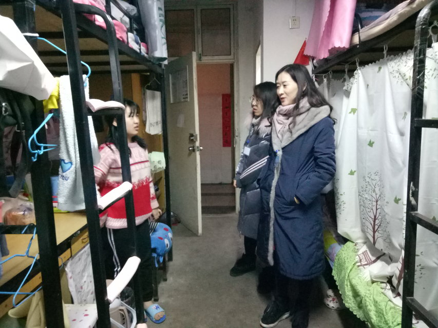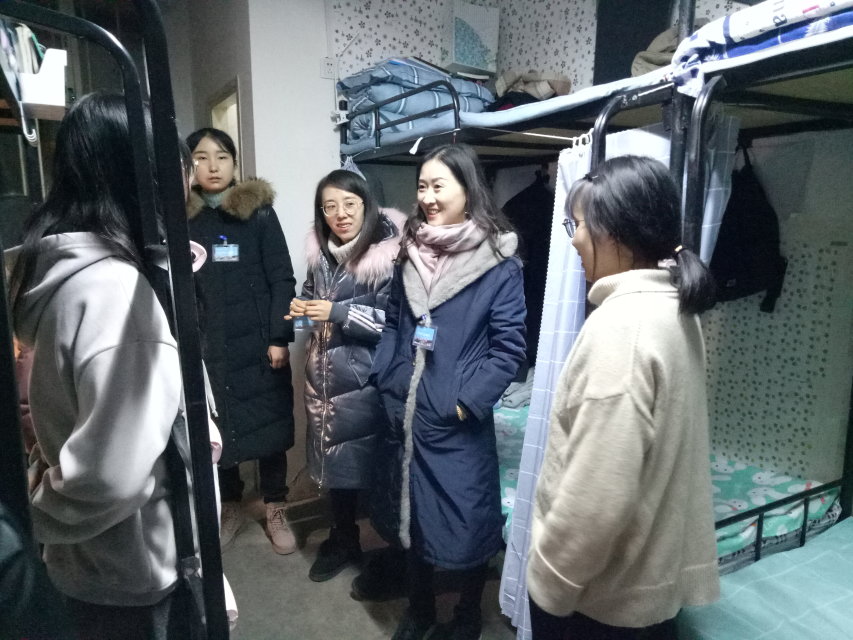 1 月1日晚,yl6809永利党委副书记朱晓娟老师 ,学院团委查秀芳老师 、刘心月老师,来到兰天学生公寓,检查宿舍安全,并对同学们进行问候。