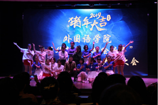 接着,由2018届团委和学生会带来的节目《外院101》展现了我们外院学子独有的风采;研究生代表带来的《重温经典、舞动青春》将歌曲与舞蹈完美融合,给我们带来了一场视听盛宴;而在舞台上再次上演的英语短剧《雷雨》又给了我们惊喜,同学们精湛的演技让观众大饱眼福;日语系外教及学生代表带来的歌曲串烧《Planet &Lemon》用清澈的声音使观众们沉浸在音乐的海洋里;小品《非诚不找》以风趣幽默的语言、夸张的动作令观众捧腹大笑,将全场的气氛瞬间点燃;舞蹈《As if it’s your love》以曼妙优雅的舞姿吸引了在场观众的眼球;在晚会的最后,我院合唱团同学们带来的《外院好声音》将晚会推上了高潮,他们深情款款的歌声引来了观众的阵阵欢呼与尖叫,为本场晚会画上了完美的句号。
