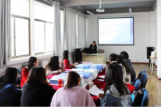 毕婷老师介绍了过程教学法(Process Approach)的概念及其研究背景和意义,对该教学法的模式进行了深入分析,并结合自己在美国中田纳西州立大学访学经历,分享了过程教学法在美国ESL写作课堂上的具体实施过程。报告结束后,参会教师及同学们对过程写作教学模式的具体运用做了深入热烈的探讨。大家一致认为,过程教学法在英语写作教学中的应用需以大量阅读输入为基础,以交流、分享、合作为支架,以构思、写提纲、打草稿、修改、校订、发布为主要环节,并综合运用同伴评价、教师反馈、自我评价等多元评价方式,才能有效地培养学生的英语交际能力、思维能力、合作学习能力和自主学习能力。本次研讨活动为我校大学英语写作教学改革提供了新的思路。