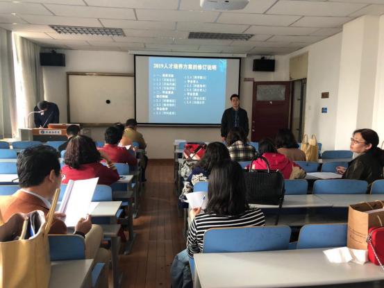 会上,杨保林传达了教育部关于师范专业认证的相关文件精神,介绍了英语师范专业认证工作的重点内容。王国礼对2019年英语专业人才培养方案修订及教学大纲修订等工作做了具体说明。同时,英语系根据学院相关安排,给老师们发放了英语专业人才培养方案修订意见征求表。