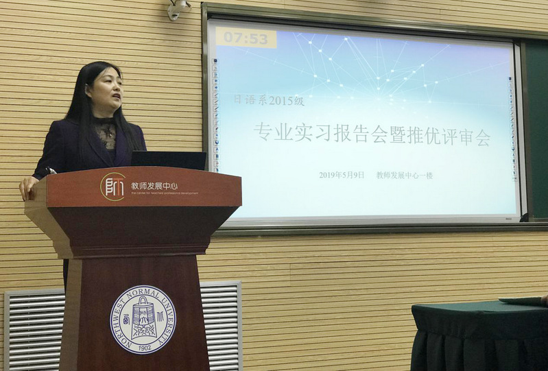 5月9日晚19:30,我院在教师发展中心一楼举办了“日语系2015级专业实习报告会暨推优评审会”。本次活动由俞婷副院长主持,校教学督导与评价委员会委员、院教学工作委员会委员靳琰老师,校教学督导与评价委员会委员郭亚文老师,院教学督导委员会委员黄彩霞老师,日语系程朝侠、冯洁、曹正霞、郅永玮老师担任评委。