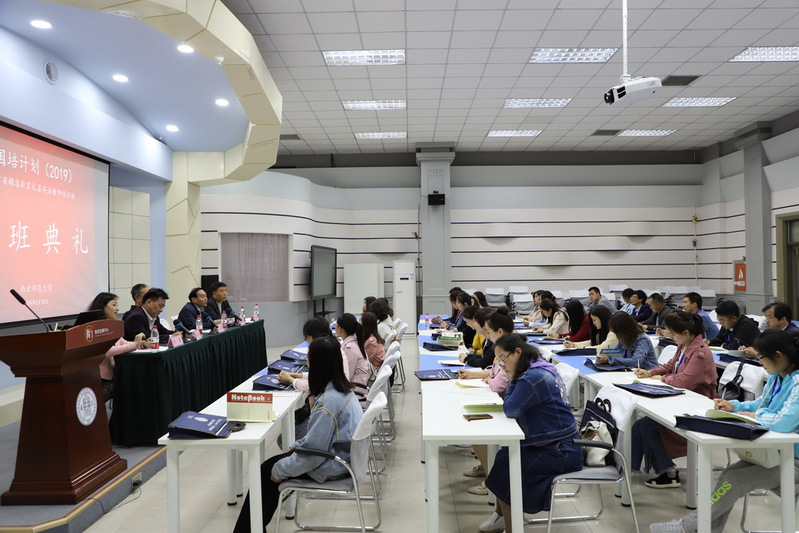 2019年5月10日,开班典礼在教师发展中心隆重举行。西北师范大学党委副书记刘玉泉、礼县教育局副局长王朝晖、学校帮扶办主任李景禄、yl6809永利党委书记王景、yl6809永利副院长凌茜及来自礼县的30位中学英语教师参加了开班典礼。在开班典礼上,王景书记代表yl6809永利对参加培训的学员表示热烈欢迎,并简要介绍了yl6809永利的基本情况。凌茜副院长就培训期间的教学与安全等问题提出了具体要求。王朝晖副局长代表礼县教育局对我校表示感谢,并希望礼县30名参训学员把握机会,用心学习,学以致用。礼县龙林镇初级中学赵琼老师代表全体参训学员发言。最后,刘玉泉副书记深情回忆了西北师范大学与礼县的合作历史和渊源,希望参加培训的学员多与专家交流,西北师范大学的授课教师也要多了解中学英语教育现状,互相学习,共同提高。