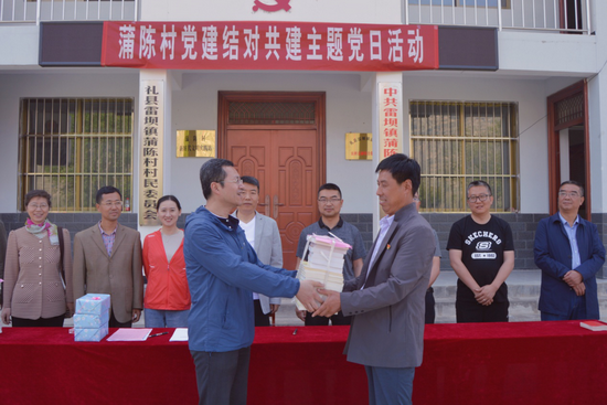 接下来,帮扶工作组干部为蒲陈村全体党员配发党章,为蒲陈村党员活动室赠送党建书籍,为雷坝学区初级中学、中心小学赠送双语版《习近平谈治国理政》和中小学英语课外读物,为驻村帮扶干部赠送办公用品。