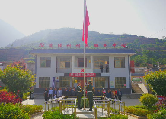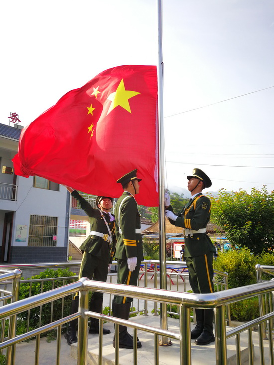 上午8时,雄壮的国歌声在蒲陈村的群山中响起,西北师范大学国旗班旗手迎着朝阳、迈着铿锵有力的步伐走向旗台,升旗手振臂一挥,鲜艳的五星红旗迎风展开冉冉升起。蒲陈村驻村帮扶工作队队长兼第一书记李喜平代表全体帮扶干部在国旗下讲话,向父老乡亲宣讲党的扶贫政策,进一步坚定蒲陈群众与全国人民同步进入小康的决心和信心。