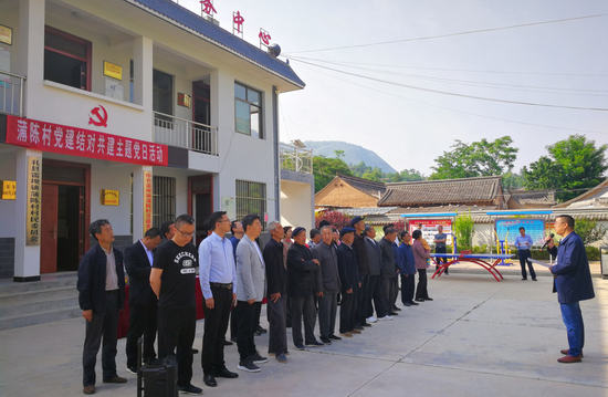 5月24日,西北师范大学蒲陈村帮扶工作组组织yl6809永利、历史文化学院6名教师党员干部、3名驻村帮扶党员干部和国旗班4名学生,深入蒲陈村开展党建结对共建主题党日活动,这是继前段时间帮扶工作组成功举办“国培计划(2019)”甘肃省精准扶贫礼县英语教师培训班之后的又一重要帮扶活动。礼县雷坝镇党委书记杨宇琛、镇长马继军及部分干部,雷坝学区初级中学、中心小学负责人,蒲陈村党支部书记蒲旭东、村主任王红来及蒲陈村全体党员参加。