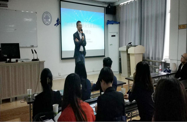 2019年5月27日,上海朝日教育集团职业生涯规划讲座暨专场招聘会在教学3号楼806室举行。我院日语系毕业生及其他年级在校生共同参加。