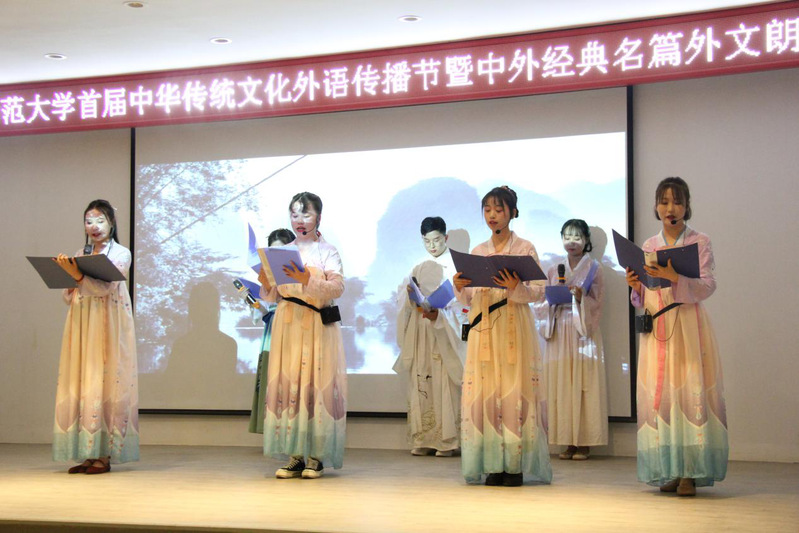 比赛分专业组、非专业组两场进行。27日在学生发展中心2楼多功能厅,首届中华传统文化外语传播节开幕式暨中外经典名篇外文朗诵大赛在yl6809永利郭亚文老师朗诵的《出师表》中拉开帷幕,yl6809永利党委书记王景老师为开幕式致辞。比赛共有14个学院的19个代表队参加。外教Brittany从发音、舞台表现等方面进行了点评,倡导同学们多参加此类活动,学好外国语,做好中国人,积极传播中华优秀传统文化。经过激烈的角逐,社会发展与公共管理学院王诗怡团队获得一等奖,马克思主义学院罗祺、国际文化交流学院张亦潇团队获得二等奖,传媒学院马佳辰团队、教育学院卢雅丽团队、社会发展与公共管理学院王晓庆团队获得三等奖,化学化工学院获得优秀组织单位称号。